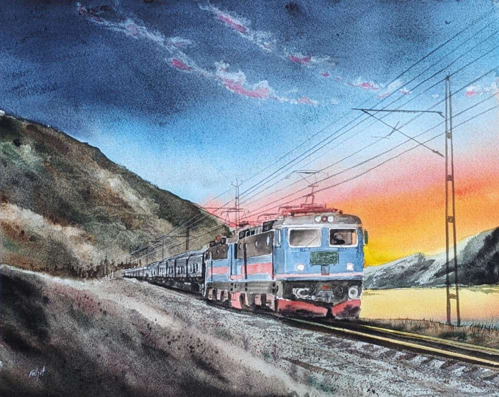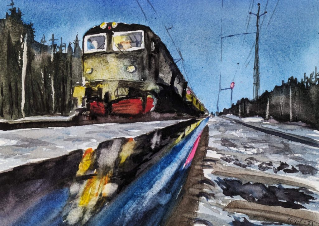 En dag på jobbet. Jocke Thörnwall är en fantastisk fotograf och han delar ofta med sig av bilder från vardagen som lokförare. Jag vill bara ut och åka tåg. Mått: 40×50 cm. Tavlan är såld. Du är välkommen att höra av dig om du skulle vara intresserad av en akvarell med ett liknande motiv.