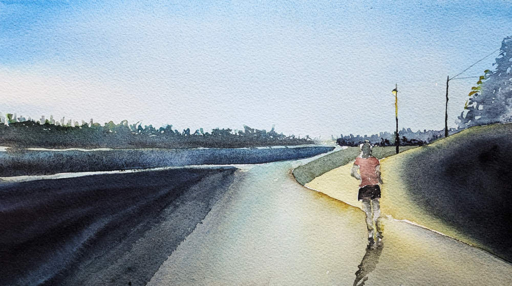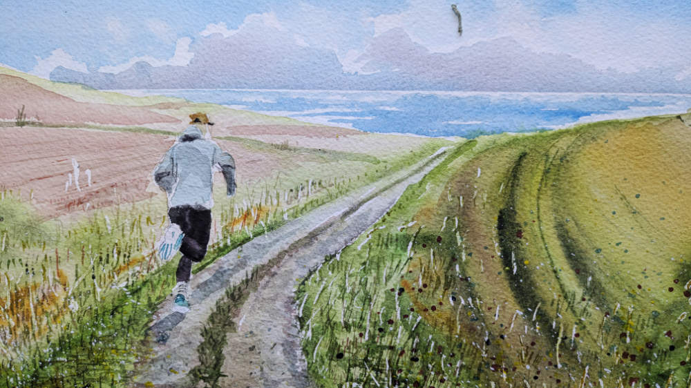 Jag är en löpare. Jag fokuserar på att sätta en fot framför den andra, på nästa steg, jag tar backen först när den kommer, jag höjer blicken och lyssnar på vindens sus. Jag känner pulsens variationer och jag känner markens tryck mot fotsulorna. Jag förflyttar mig genom landskapet, ett steg i taget. Jag har lärt mig att känna igen den smärta jag ska undvika och den som jag kan tillåta mig att stå ut med. Jag springer inte längre men jag är ändå en löpare.